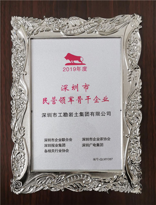 工勘巖土集團深耕巖土領(lǐng)域近30年,始終堅守專業(yè)主義,先后完成了一大批國家、省、市級重點項目,數(shù)十項工程獲國家級、部級等全國性獎項,數(shù)百項工程獲省、市級優(yōu)秀工程獎項。此次成功入選“2019年度深圳市民營領(lǐng)軍骨干企業(yè)”,再一次體現(xiàn)了社會各界對工勘品牌實力和科技創(chuàng)新的充分認可。